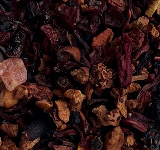 Zutaten: ApfelstĂŒcke, HibiskusblĂŒten, Hagebuttenschalen, gesĂ€uerte ApfelstĂŒcke (Apfel, SĂ€uerungsmittel: ZitronensĂ€ure), Korinthen, PapayawĂŒrfel (Papaya, Zucker, SĂ€uerungsmittel: ZitronensĂ€ure), Aroma, Fliederbeeren, SauerkirschstĂŒcke, HimbeerstĂŒcke, schwarze Johannisbeeren, Heidelbeeren.