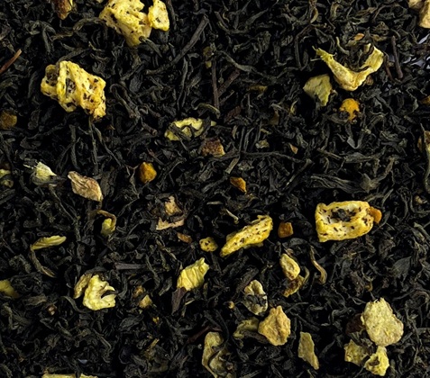 Zutaten: Schwarzer Tee, Orangenschalen (8%), Ingwerstücke (4,5%), Kurkuma, Zitrusöl, Ananasstücke, Kurkumapulver, natürliches Passionsfrucht-Aroma, natürliches Erdbeer-Aroma, natürliches Ingwer-Aroma.